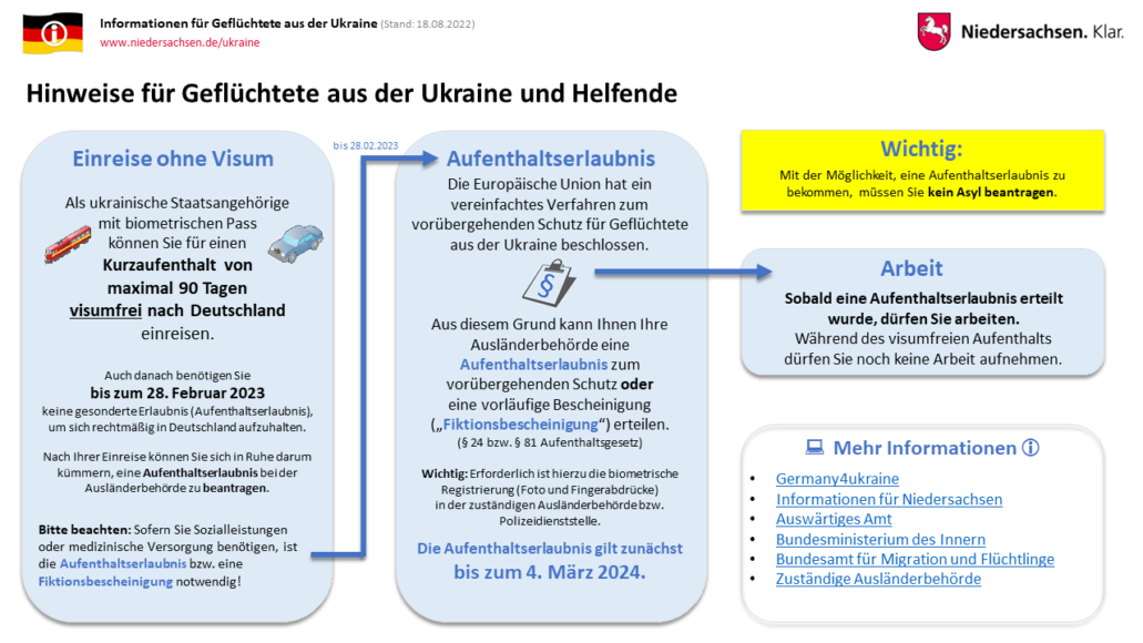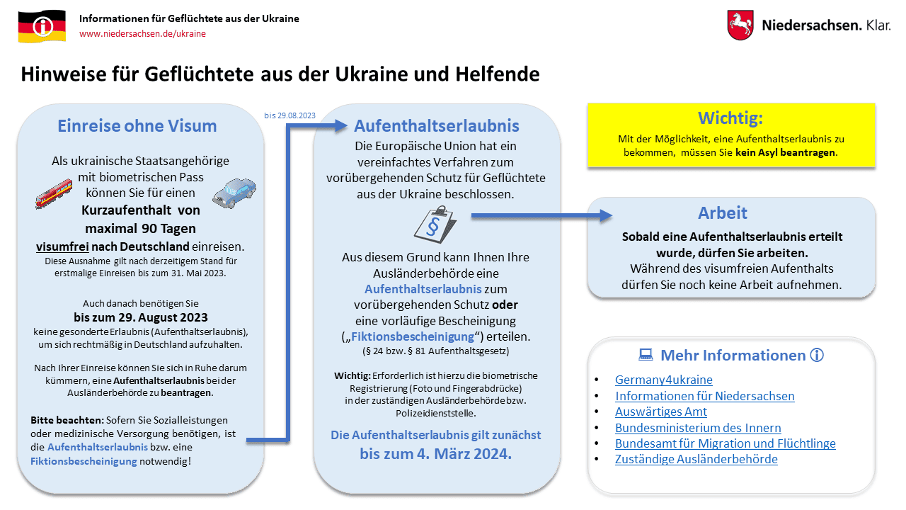 Hinweise zur Einreise und dem Aufenthalt in Deutschland/Niedersachsen